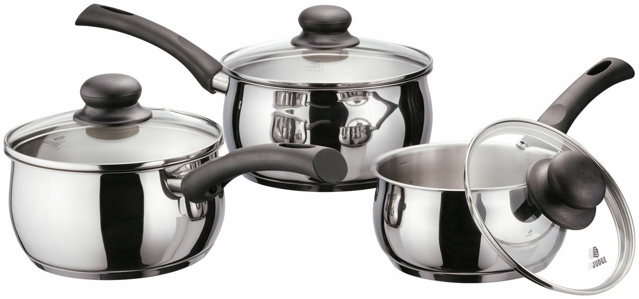 Available Products: Milk Pan, 16cm Saucepan, 18cm Saucepan, 20cm Saucepan, 3 Piece Saucepan Set, 16cm Draining Lid or 20cm Draining Lid